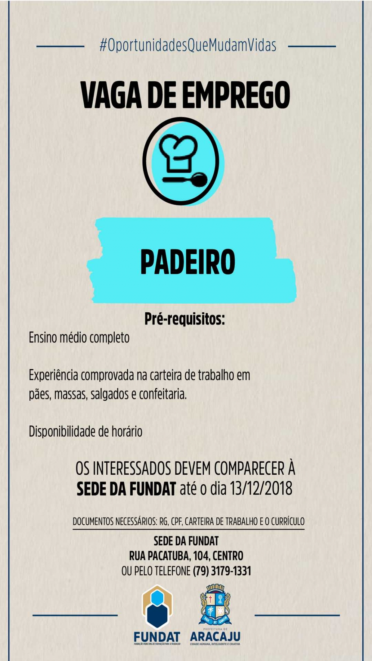 Fundat Aracaju Oferta Vaga De Emprego Para Padeiro