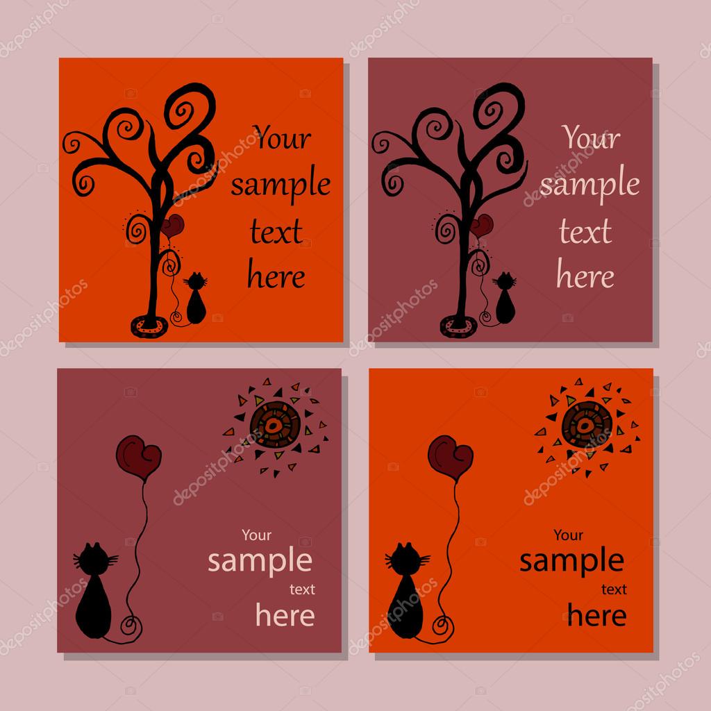 Vetores De Familia De Gatinho Gato Preto Segurando Papel De Forma De Coracao Vazio Capa De Caderno Cartaz Modelo De Livro De Composicao Conjunto De