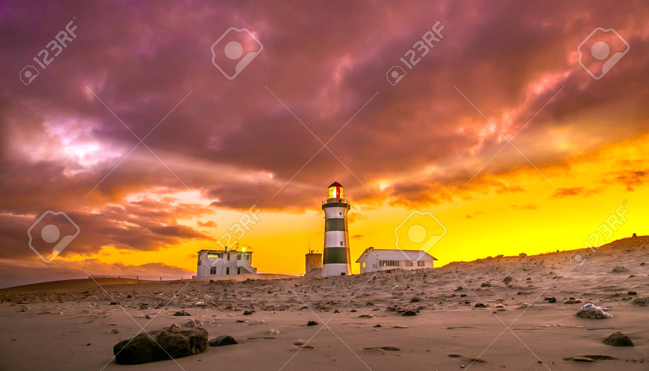 Cape Recife Lighthouse At Dawn On The Beach Near Port