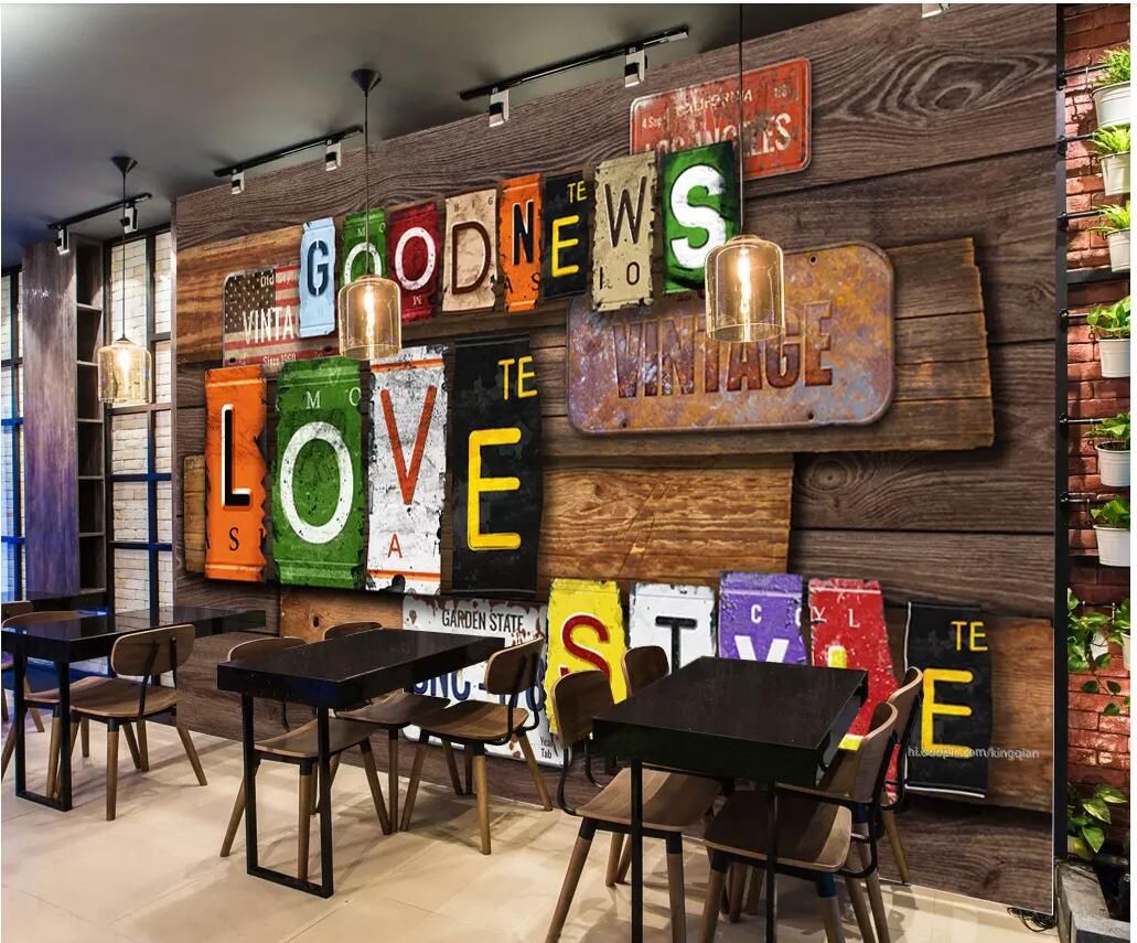 Acquista Carta Da Parati 3d Sulla Parete Foto Personalizzata Tavoletta Di Legno Di Metallo Vintage Piastra Metallica Ktv Sfondo Home Decor Soggiorno