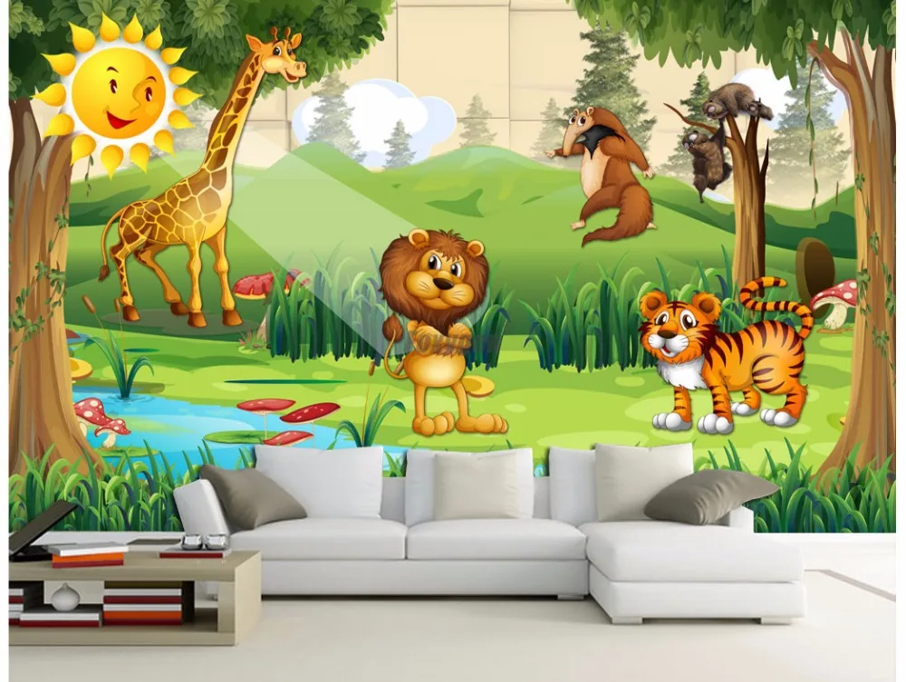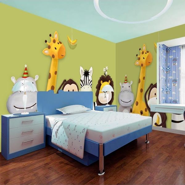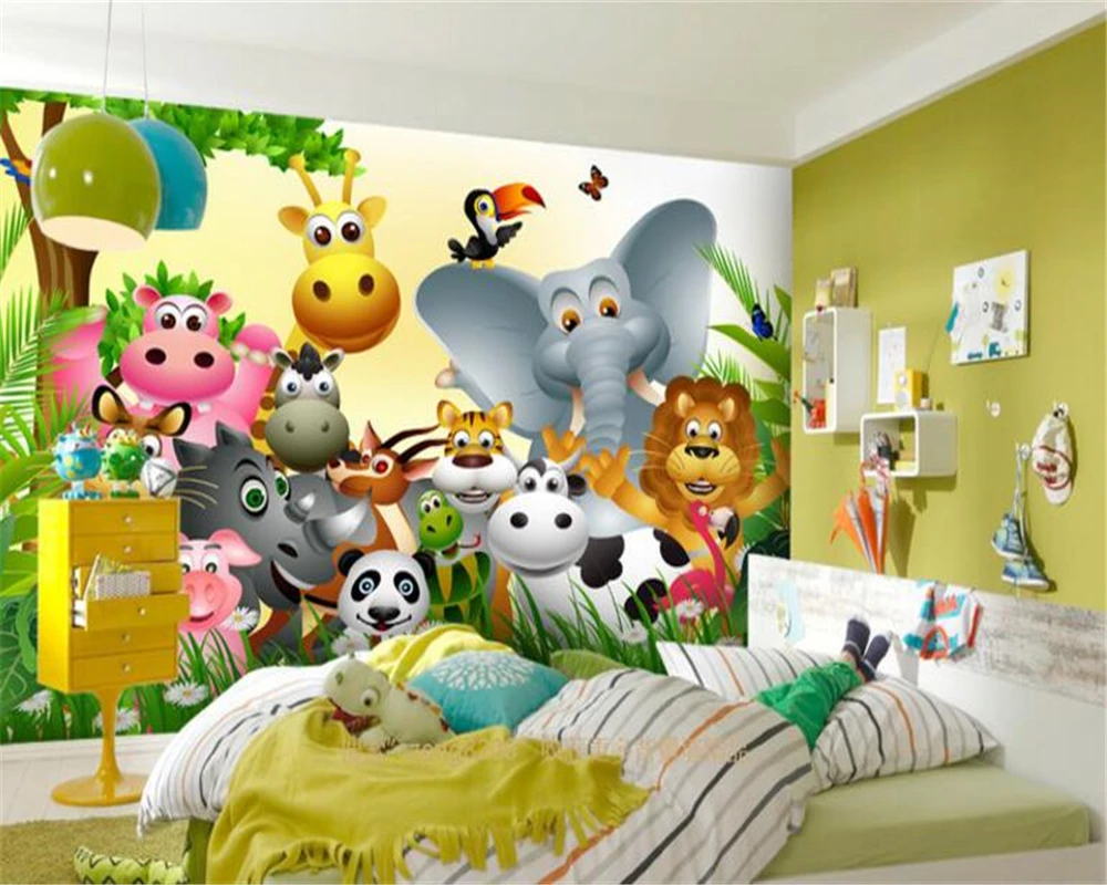 Acquista Personalizzato Murale Carta Da Parati Camera Dei Bambini Camera Da Letto Tema Del Fumetto Animali Dipinto Sfondo Immagini Decorazione Della