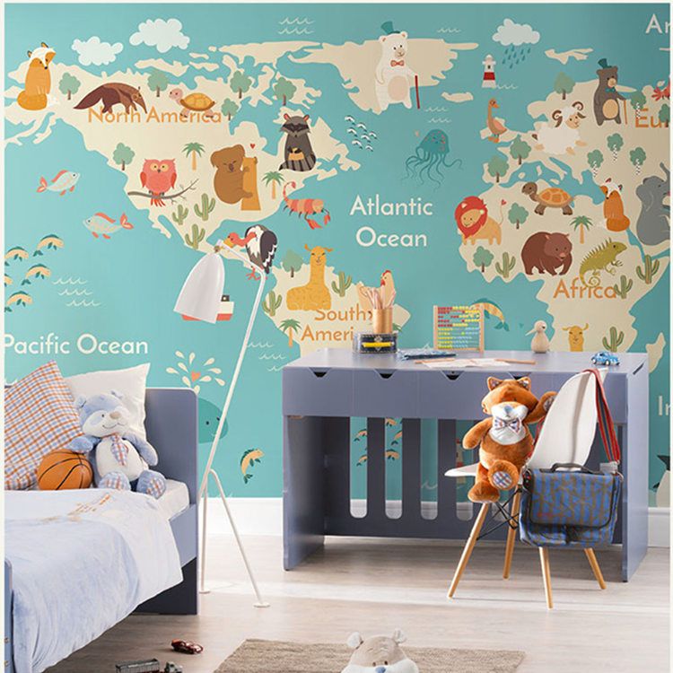Acquista Cartone Animato Mondo Animale Mappa Carta Da Parati Camera Dei Bambini Ragazzi E Ragazze Camera Da Letto Carta Da Parati Murale Muro Murale