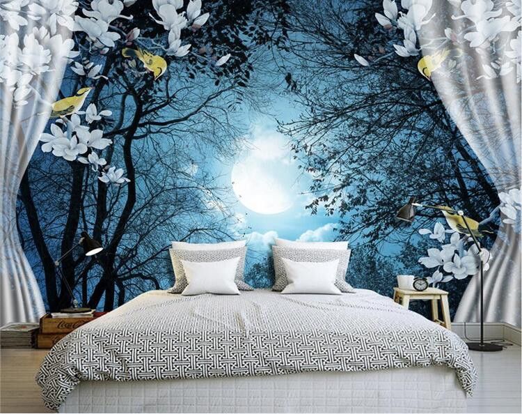 Acquista Carta Da Parati 3d Carta Da Parati Paesaggio Naturale Notte Tranquilla Foresta Luna Camera 3d Personalizzata Paesaggio Foto Wallpaper