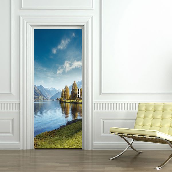 Acquista Fai Da Te 77 200 Centimetri Creativo Muntain Sea Door Sticker Paesaggio Stile Carta Da Parati Camera Da Letto Soggiorno Paesaggio