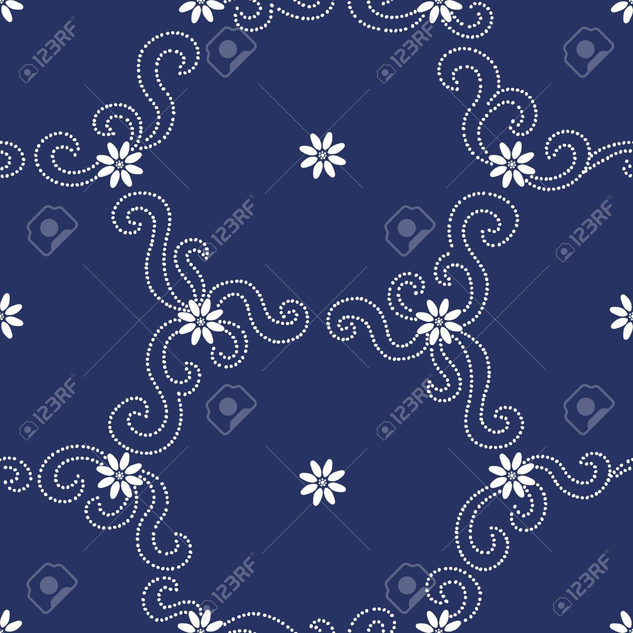 Contrasto Seamless Con Piccoli Fiori E Punteggiata Curls Ornamental Floreale Sfondo Infinito Puo Essere Utilizzato Per Carta Da Parati Riempimenti A