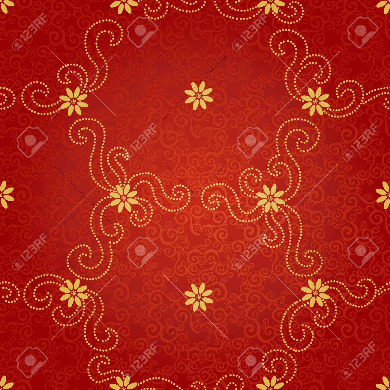 Modello Senza Cuciture Ornamentale Con Piccoli Fiori E Riccioli Sfondo Infinito Floreale Rosso Puo Essere Utilizzato Per Carta Da Parati