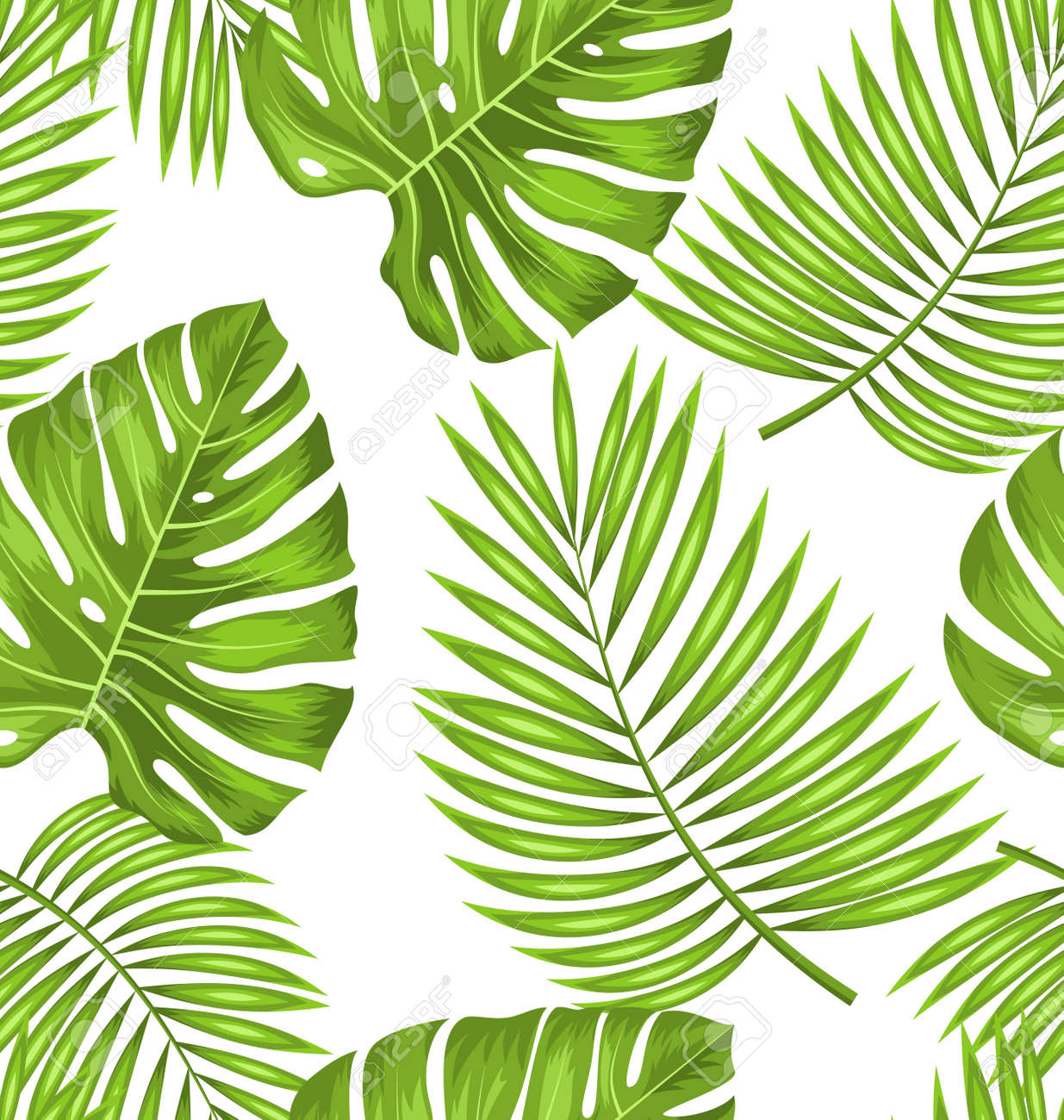 Carta Da Parati Senza Soluzione Di Continuita Illustrazione Con Verde Foglie Tropicali Per Campione Di Tessuto Estate Bella Texture Raster