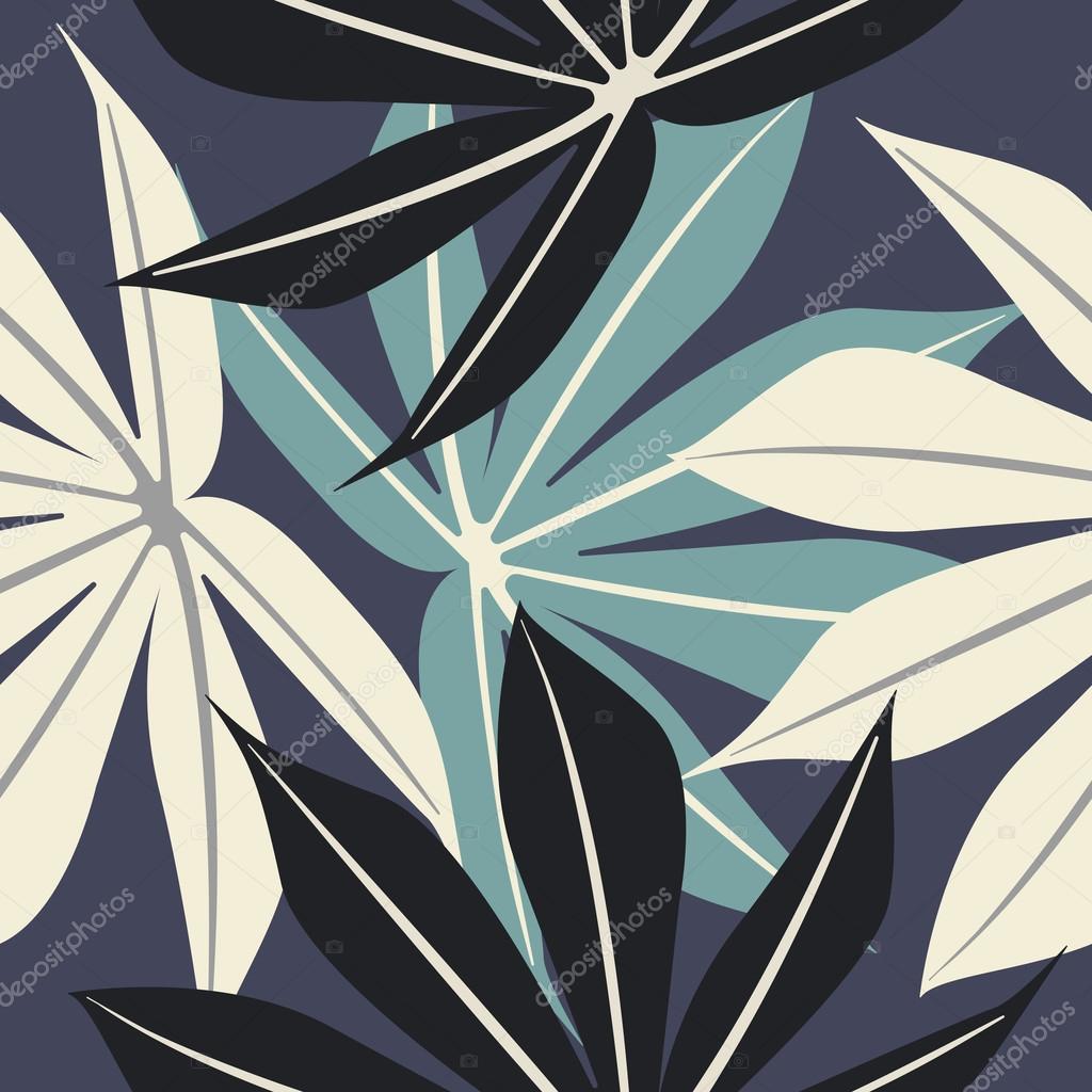 Carta Da Parati Seamless Pattern Con Foglie Tropicali