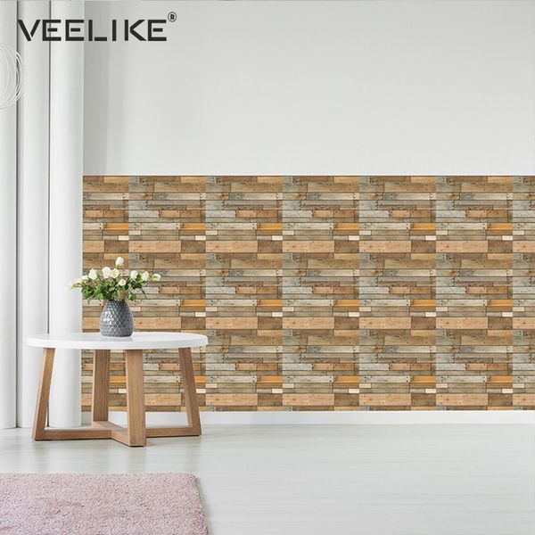 Acquista Pannelli Di Parete Di Legno Finto Dell Annata 3d Rustico Soggiorno Camera Da Letto Carta Da Parati Autoadesiva Piastrelle Cucina Backsplash