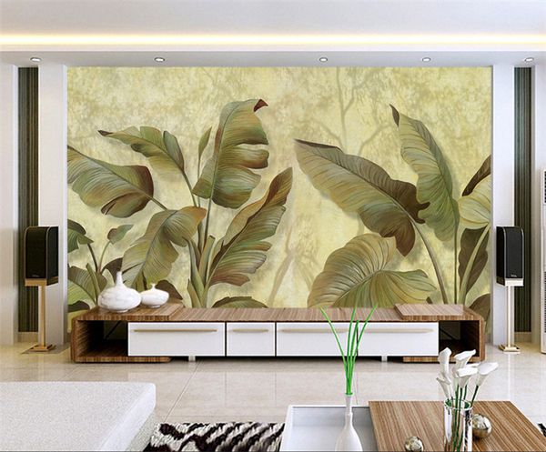 Us 8 25 51 Di Sconto Foto Personalizzata Carta Da Parati Europea Stile Dipinto A Mano Foglie Di Banano Piante Foglia Verde Tv Sfondo Della Parete