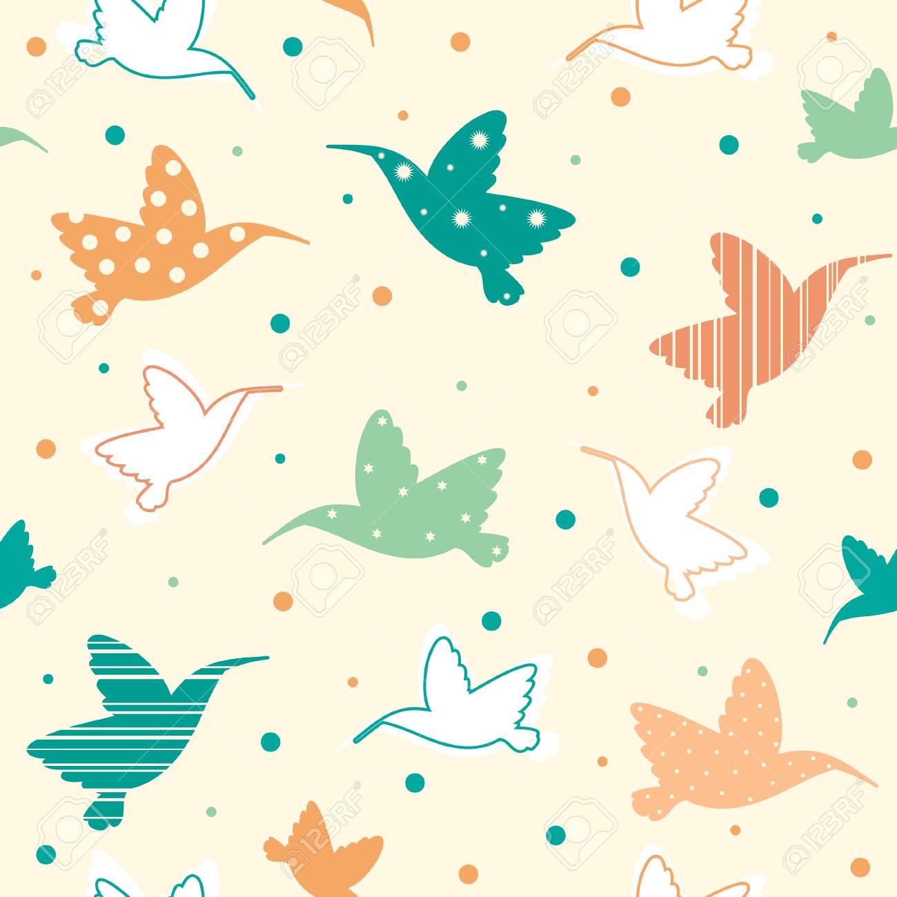 Modello Senza Cuciture Con I Colibri Del Fumetto Vector La Carta Da Parati Con Gli Uccelli Colorati Su Una Priorita Bassa Gialla