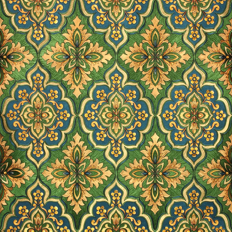 Carta Da Parati In Vinile Muro Oro Verde Ornamento Texture Di Sfondo