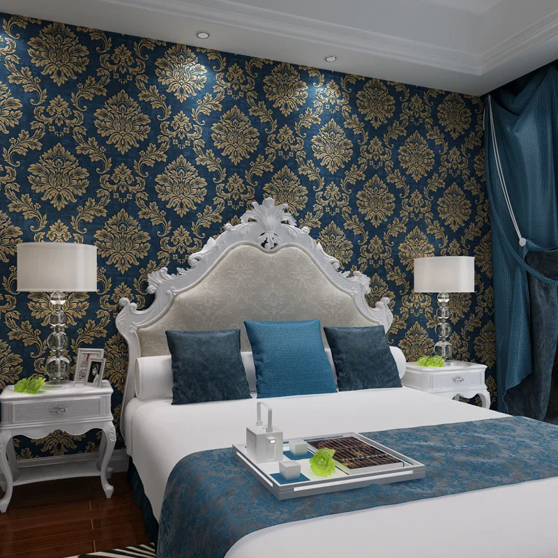 Us 42 16 38 Di Sconto Wellyu Retro Europeo Damasco Lancio Oro Carta Da Parati Verde Non Tessuto Blu Scuro Carta Da Parati Soggiorno Camera Da Letto