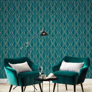Dettagli Su Rasch Collezione Lineare Carta Da Parati Geometrica Verde Blu Oro 215137