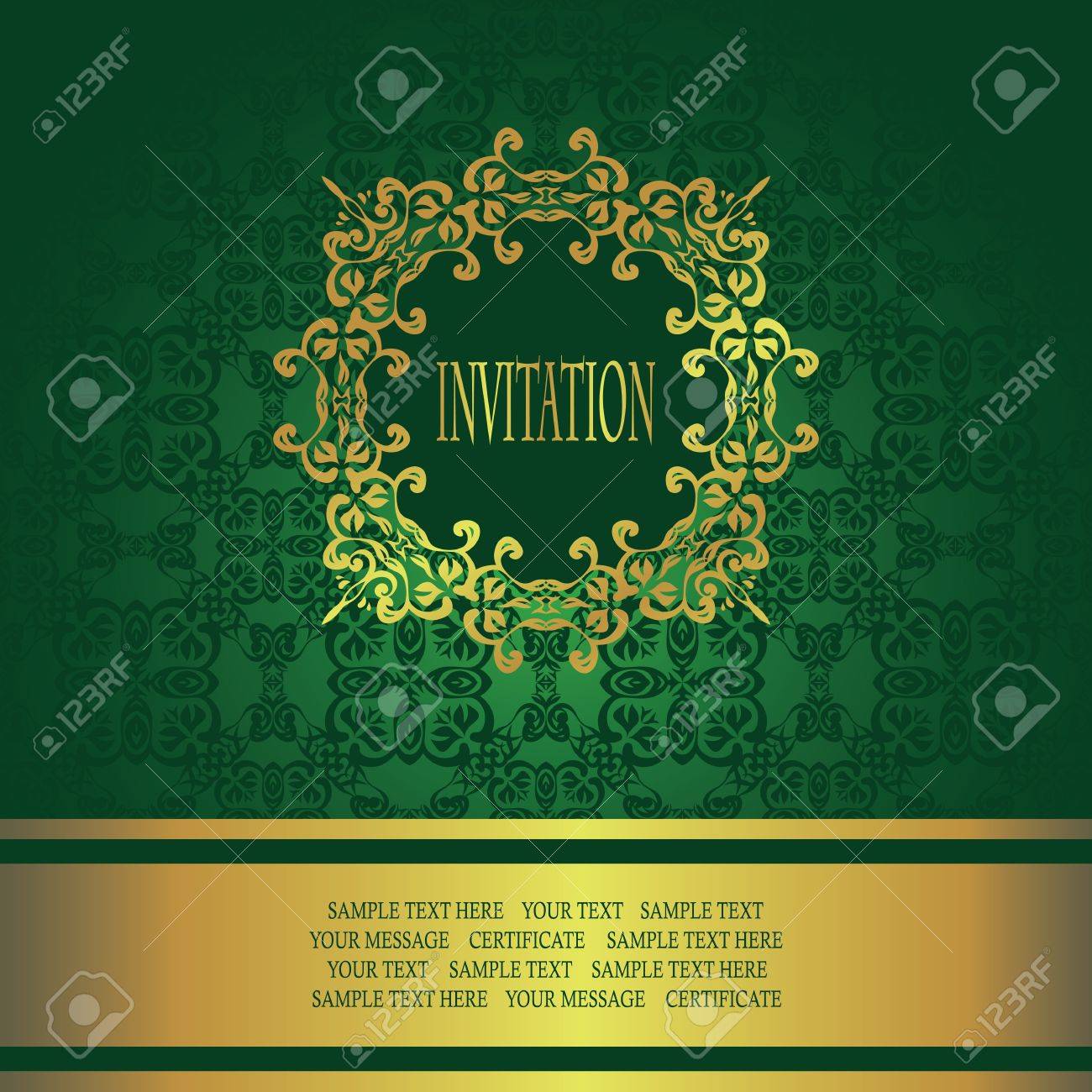 Carta Da Parati Senza Soluzione Di Continuita Vintage In Verde Con Un Nastro D Oro E Di Telaio Puo Essere Usato Come Invito