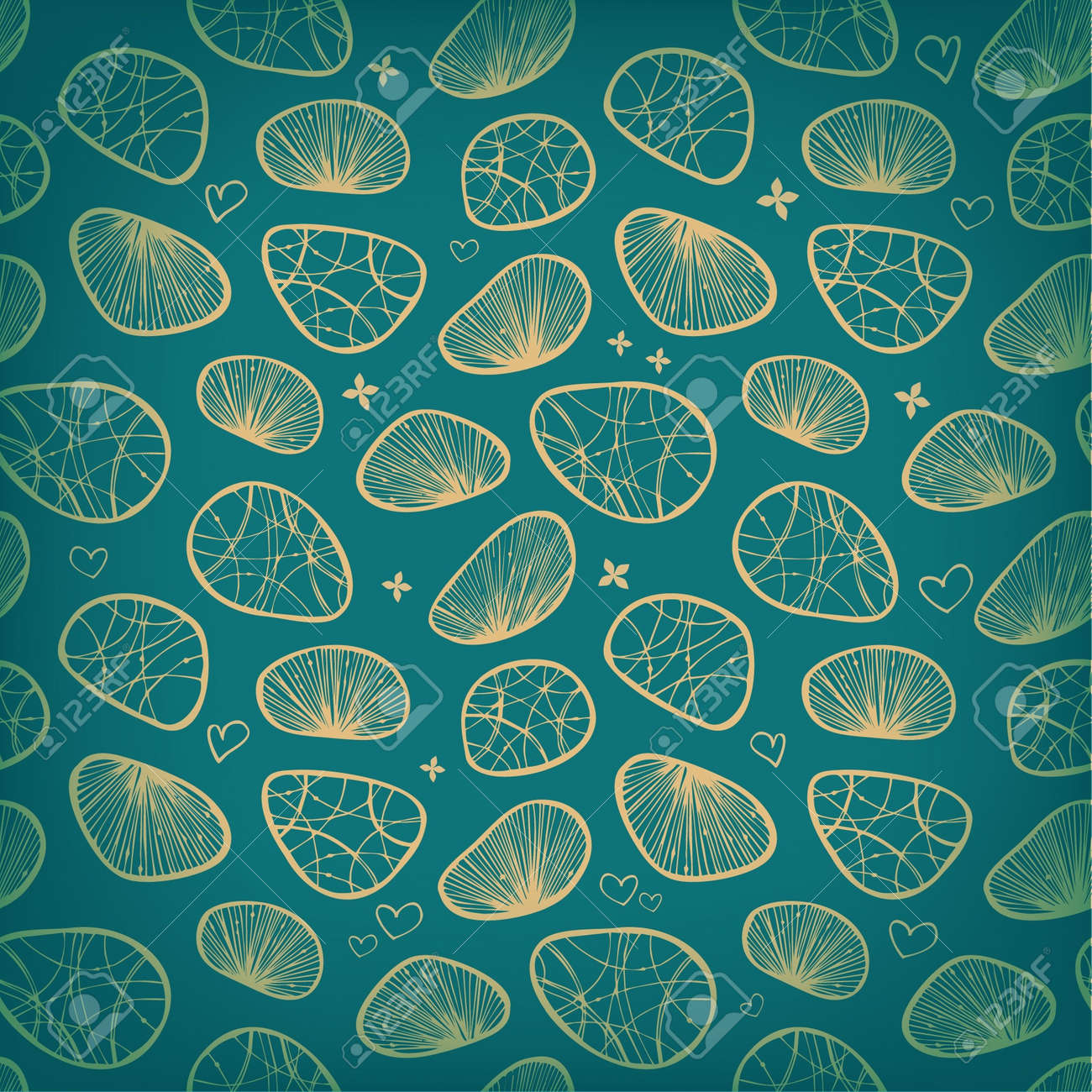 Verde E Oro Senza Soluzione Di Continuita Di Fondo Con Pietre Decorative E Conchiglie Puo Usare Per Le Arti Carte Tessuti Carte Da Parati Pagine