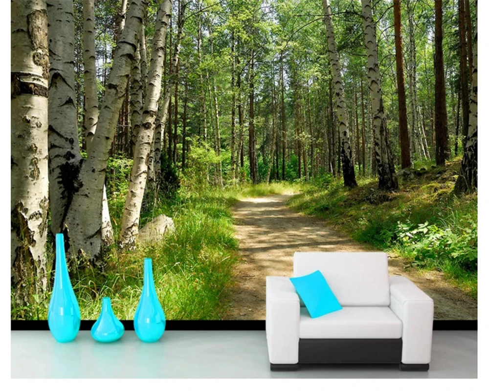 Us 8 85 41 Di Sconto Beibehang Carta Da Parati Verde Foresta Di Betulla Paesaggio Tv Sfondo Muro Papel De Parede Carta Da Parati Per Pareti 3 D Foto