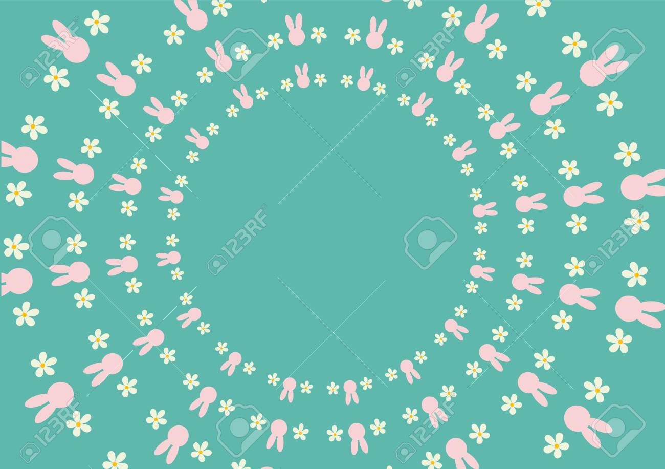 La Carta Da Parati Verde Ha Coniglietto Rosa E Fiori Bianchi A Lato Puo Essere Utilizzato Su Vari Media