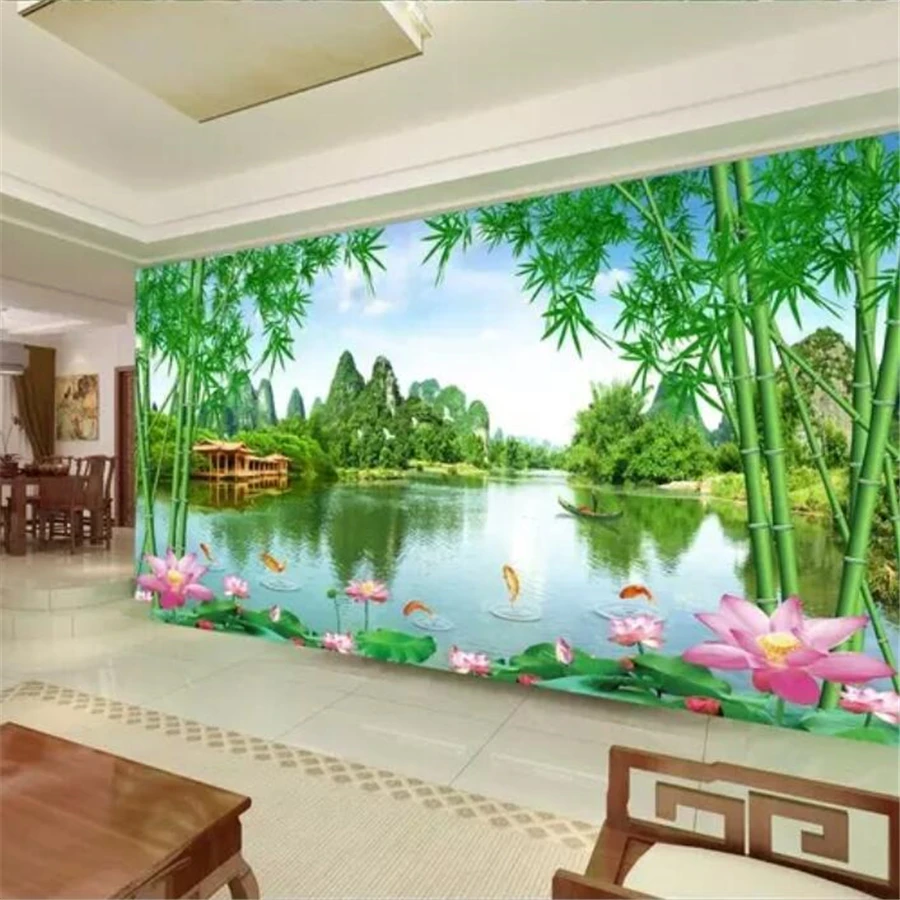 Carta Da Parati 3d Wallpaper Personalizzato Murale Wall Sticker 3d Bamboo Foresta Cascata Cigno Paesaggio Pittura Foto Murales 3d Carta Da Parati