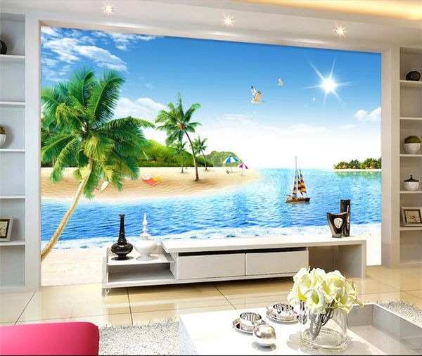 Personalizzato 3d Carta Da Parati 3d Murales 3 D Mare Spiaggia Murale Estate Paesaggio Fuori Dalla Finestra Bellezza Murale Carta Da Parati In Camera