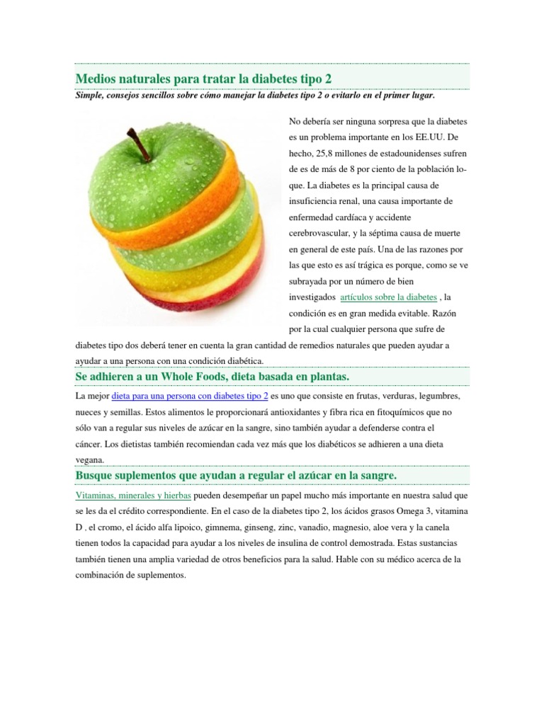 Medios Naturales Para Tratar La Diabetes Tipo 2