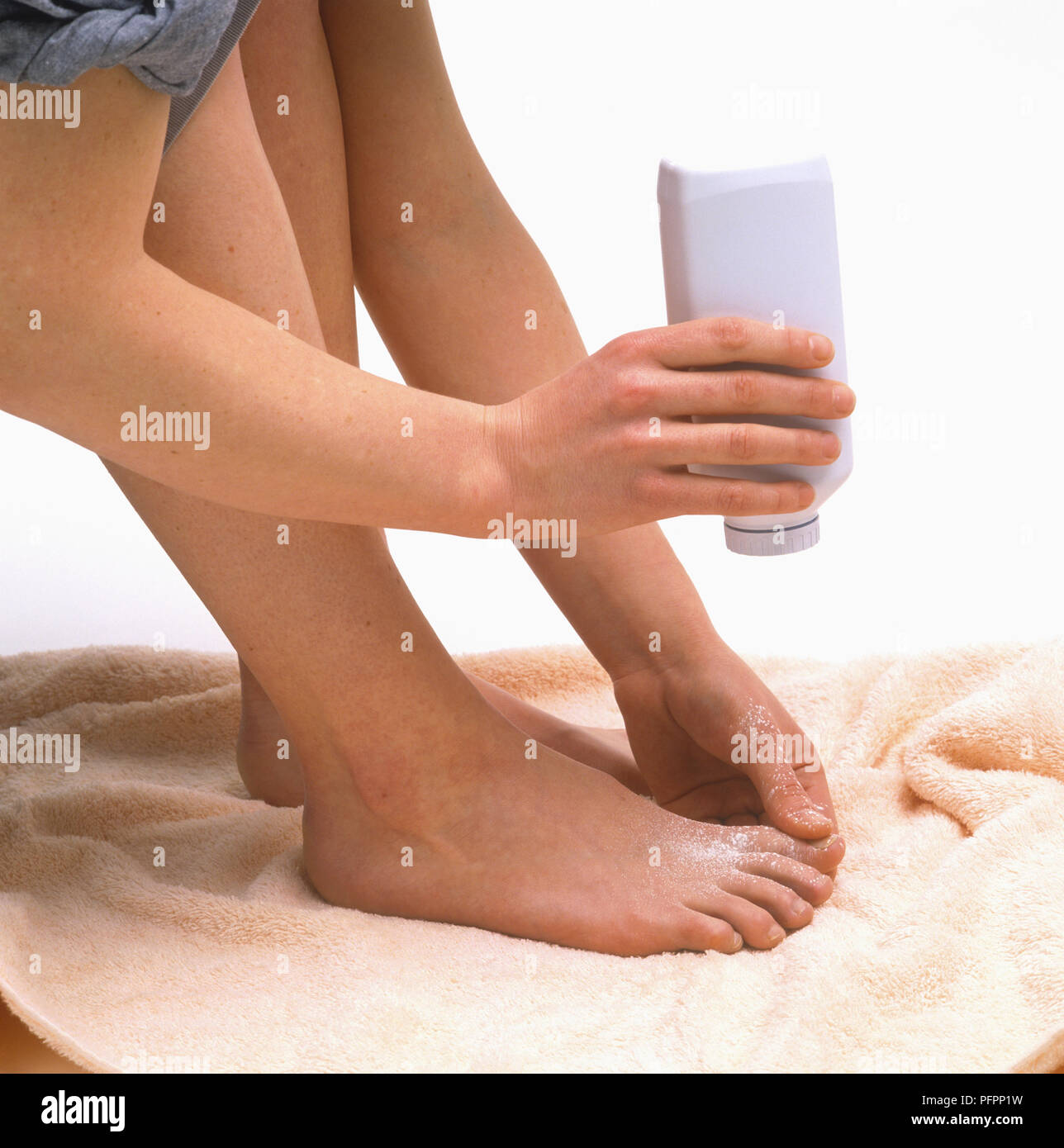 Mujer Aplicar Talco En Polvo De La Botella Para Tratar El