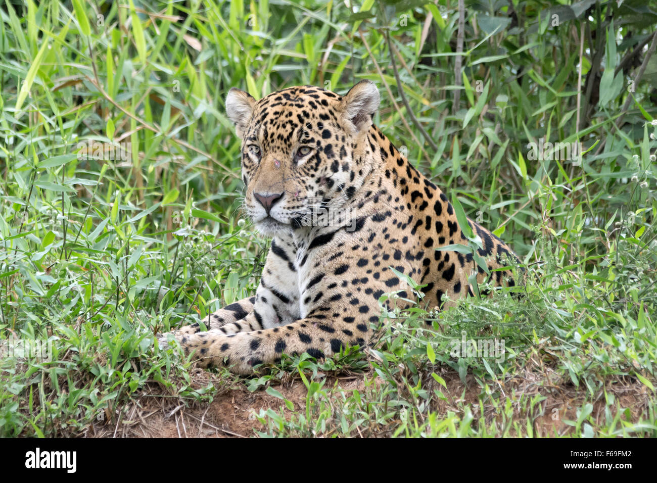 Reclining Jaguar Rio Cuiaba Pantanal Brazil Stock Photo