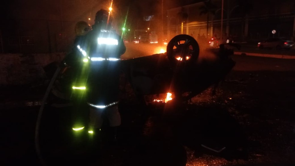 Jovens Sao Retirados De Carro Em Chamas Apos Capotar E