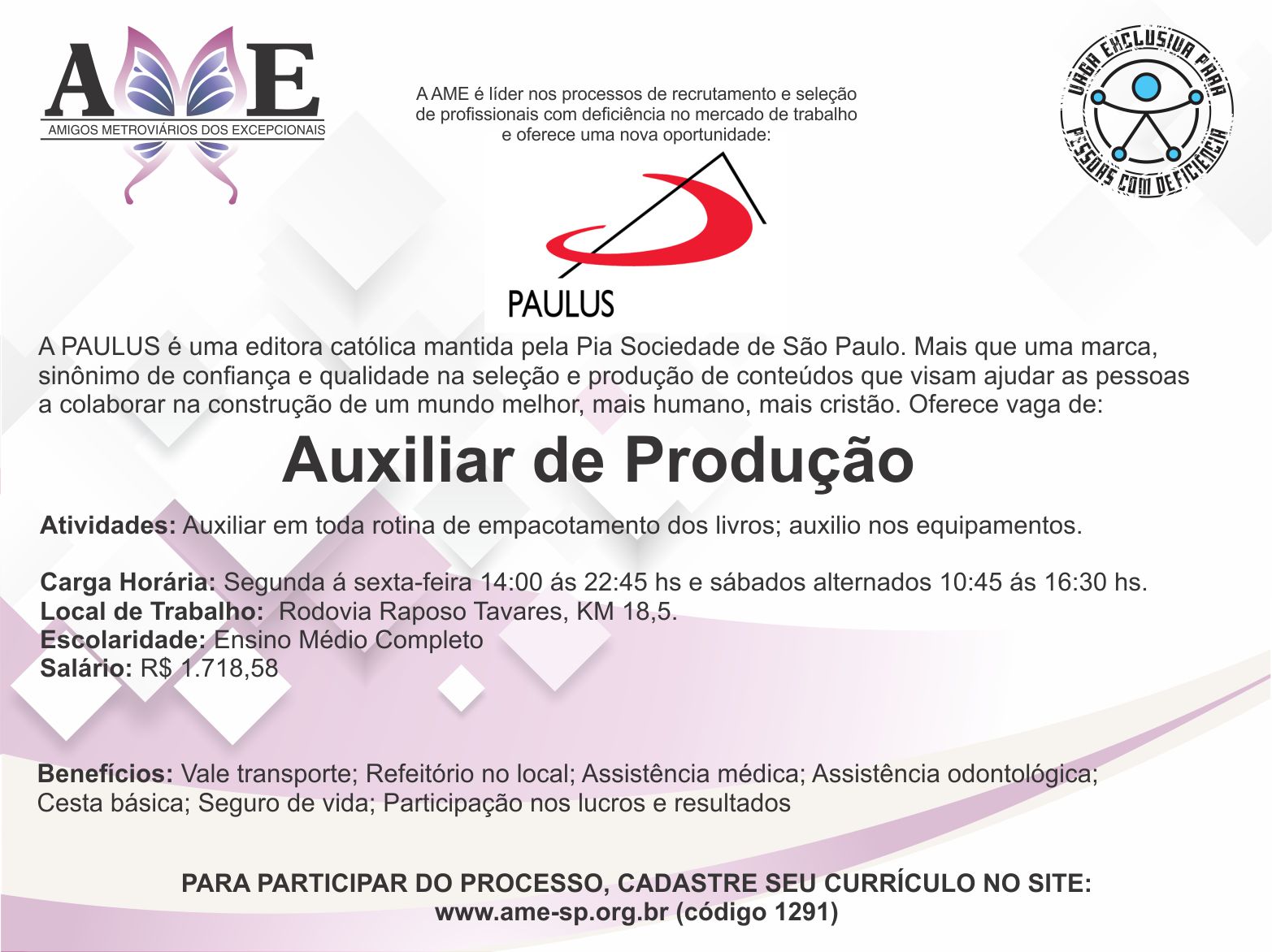 Ame En Twitter Vaga Para Auxiliar De Producao Sao Paulo