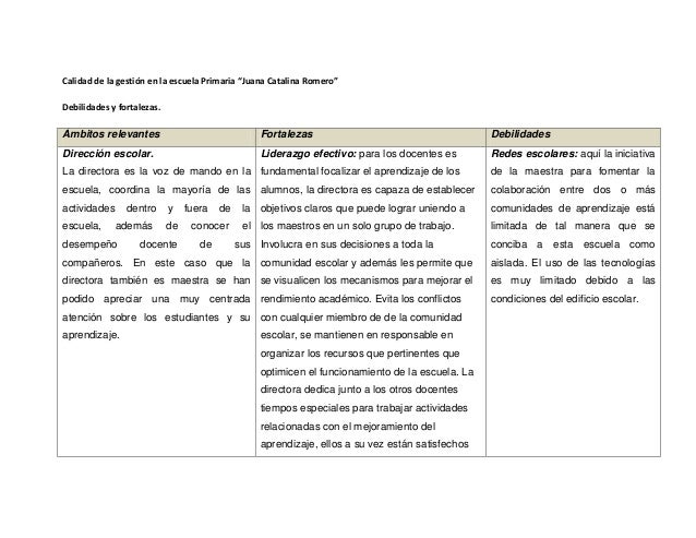 Fortalezas Y Debilidades De La Gestion Escolar