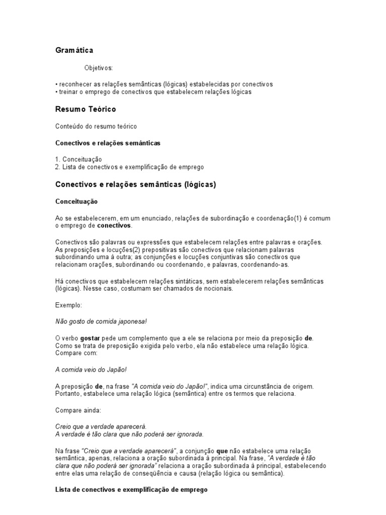 Preposicoes Conectivos De Termos Da Oracao