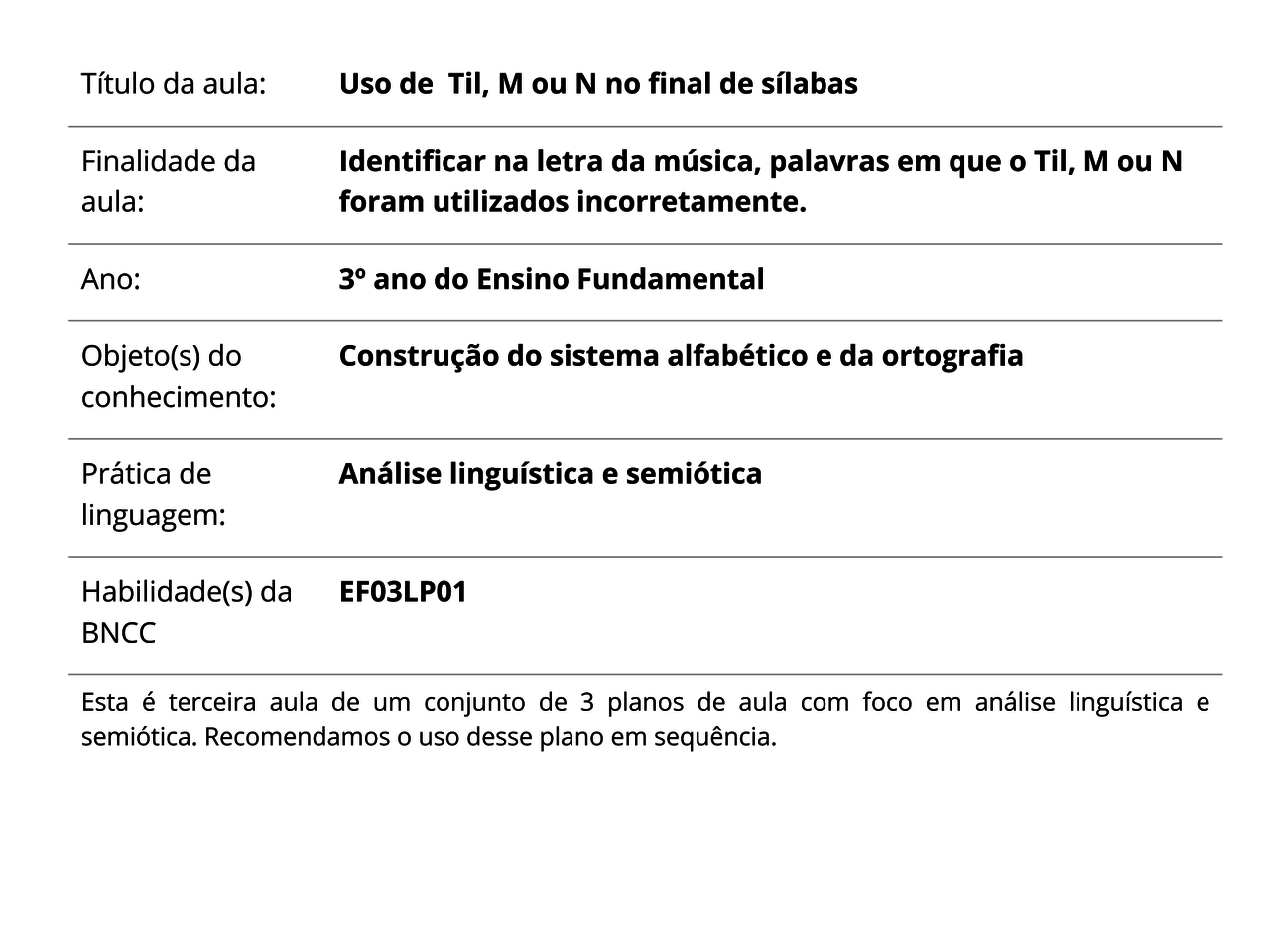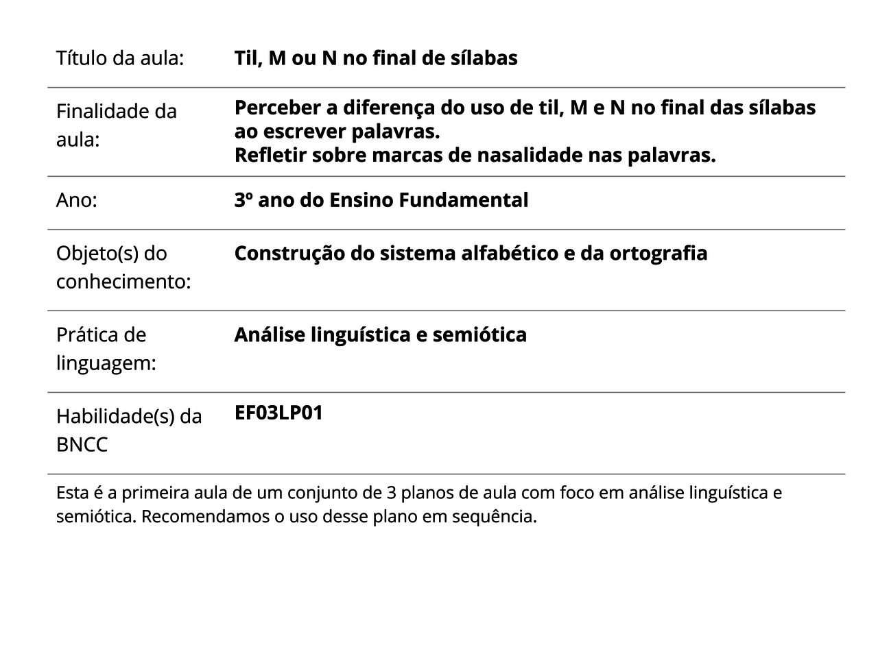 Plano De Aula 3º Ano Lingua Portuguesa Uso De Til M