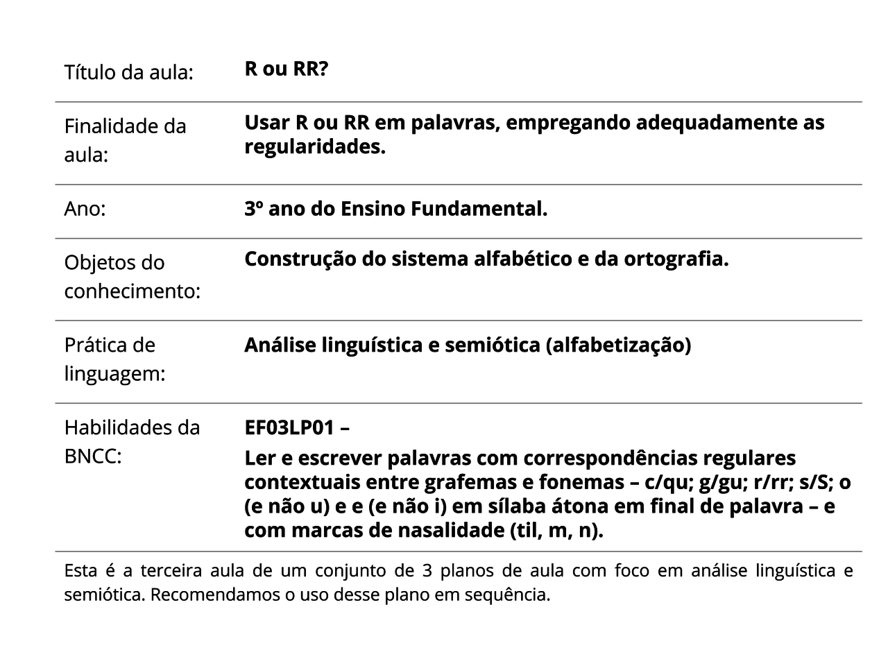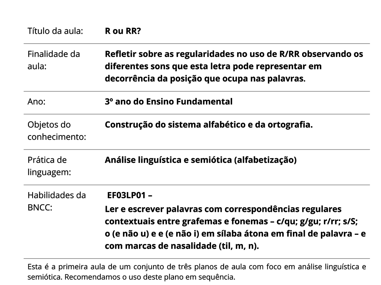 Plano De Aula 3º Ano Lingua Portuguesa R Ou Rr