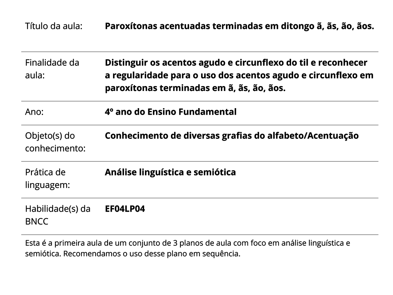 Plano De Aula 4º Ano Lingua Portuguesa Paroxitonas