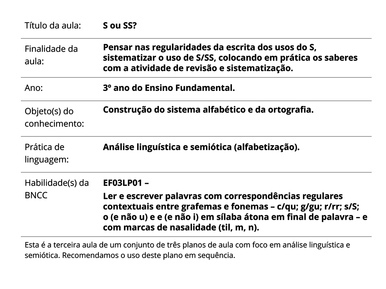 Plano De Aula 3º Ano Lingua Portuguesa S Ou Ss
