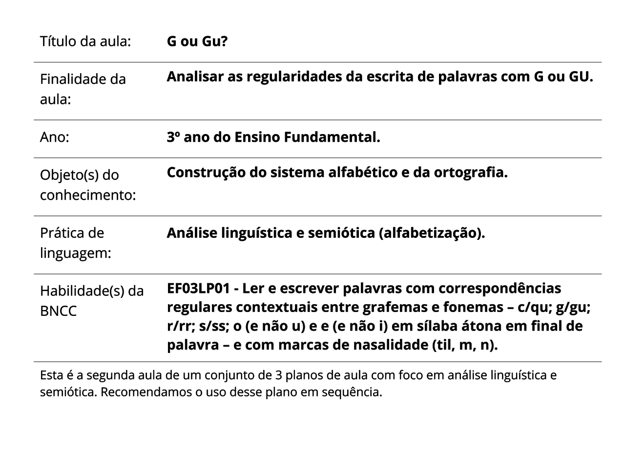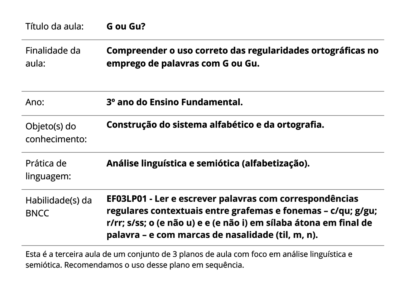Plano De Aula 3º Ano Lingua Portuguesa G Ou Gu