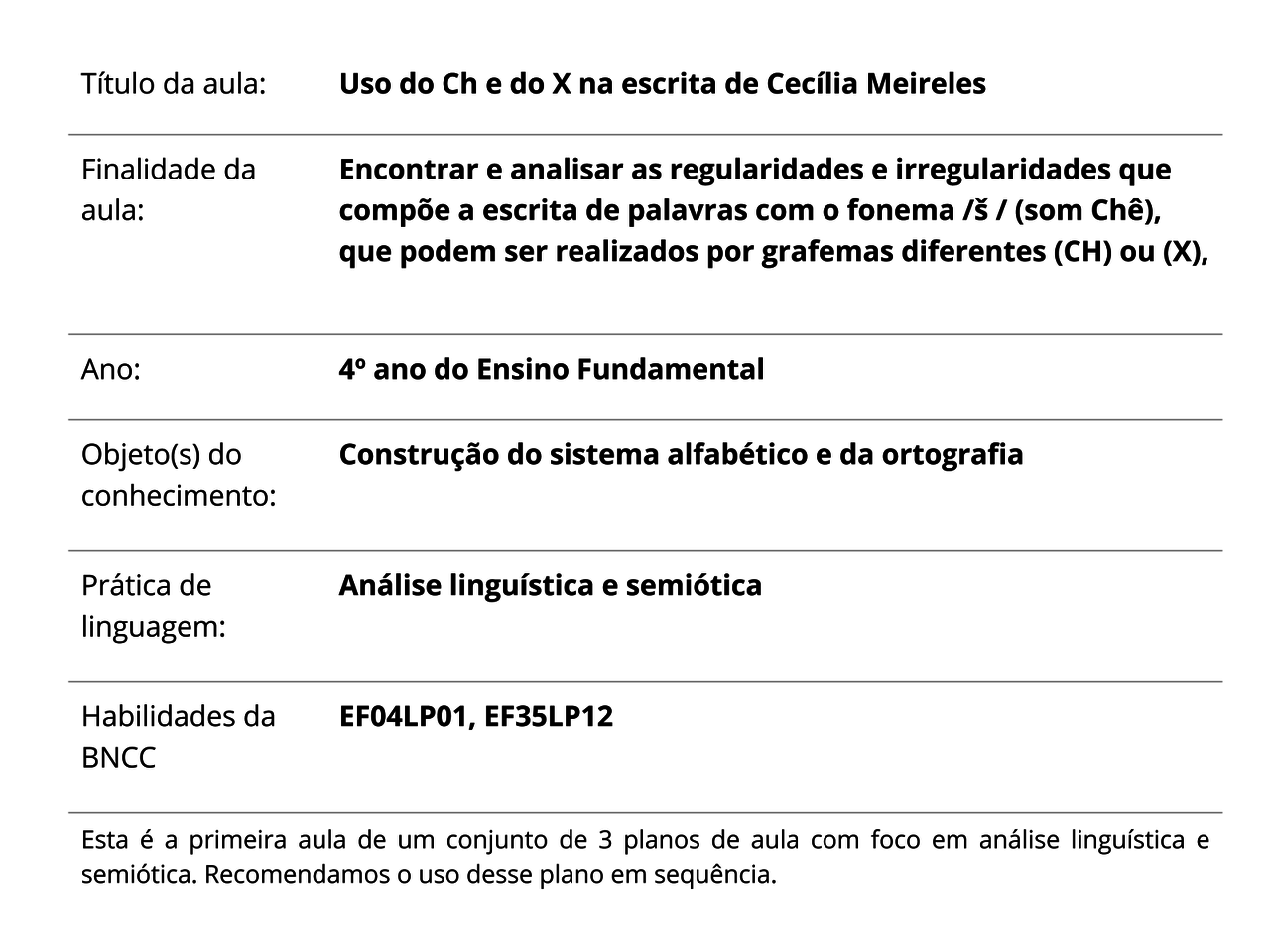 Plano De Aula 4º Ano Lingua Portuguesa Uso Do Ch E Do