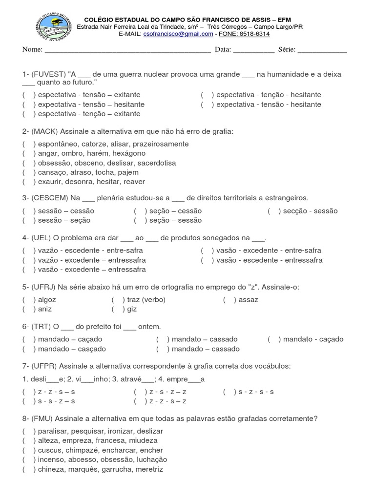 Universia Enem Ortografia Uso Do S E Do Z Texto