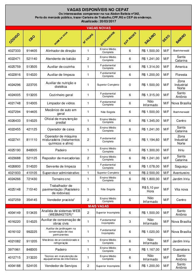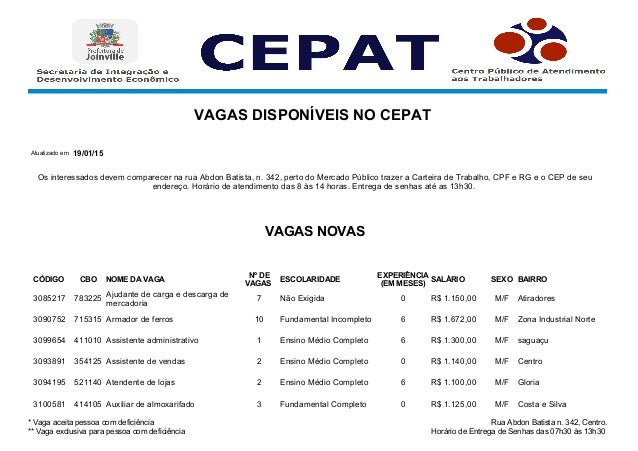 Veja As Vagas De Emprego Disponiveis No Cepat De Joinville