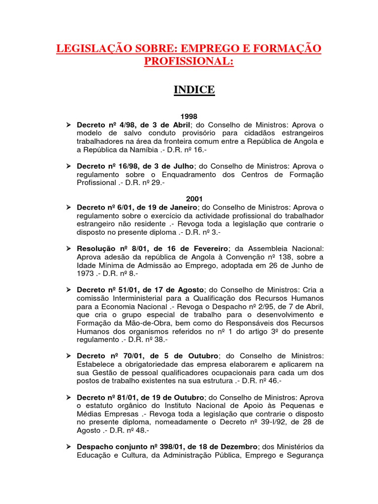 Lesgilacao Sobre Emprego E Formacao Profissional Angola