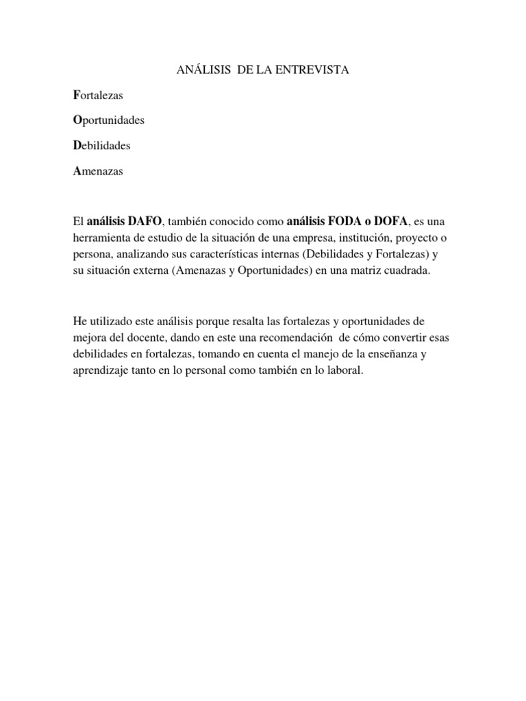 Dafo Personal Ejemplo Y Plantilla Para Tu Analisis Profesional
