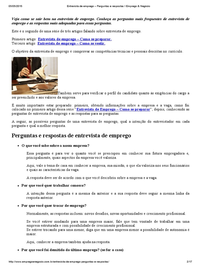 Perguntas E Respostas De Entrevistas De Emprego Entrevista