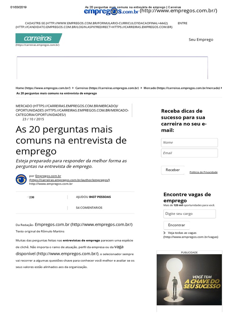 As 20 Perguntas Mais Comuns Na Entrevista De Emprego Carreiras
