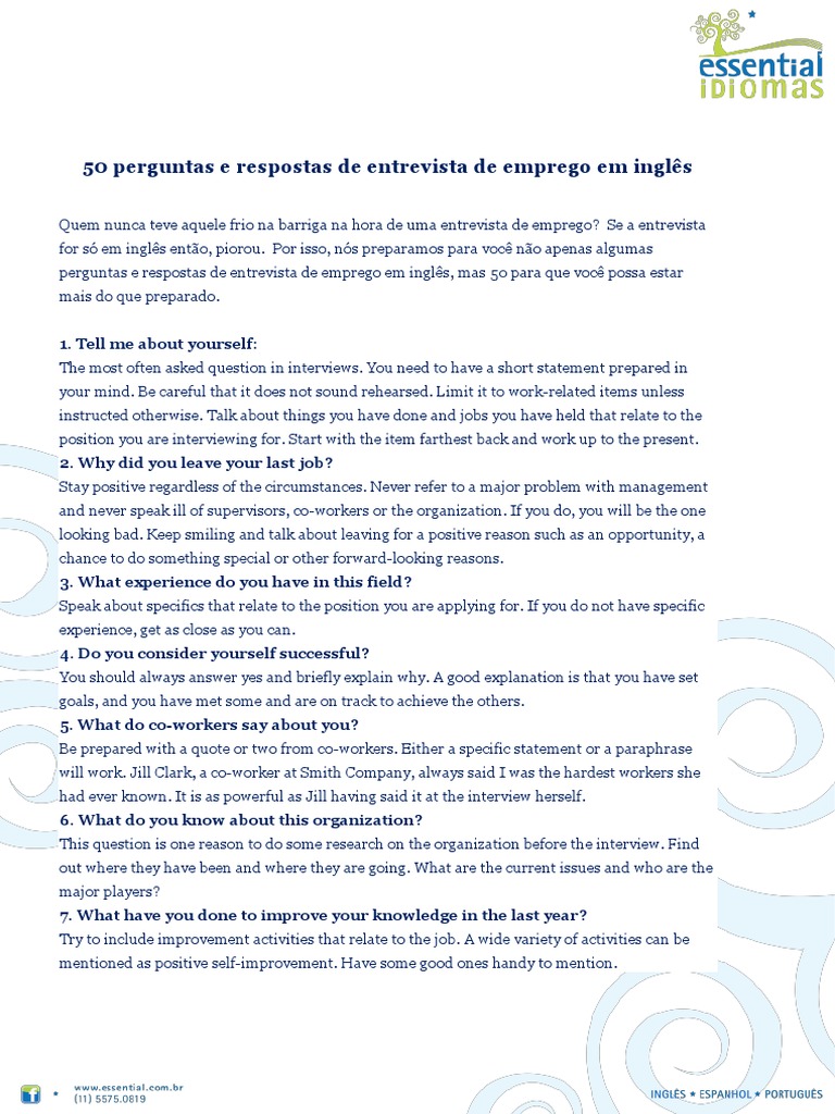 50 Perguntas E Respostas De Entrevista De Emprego Em Ingles