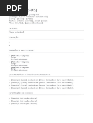 Modelo De Curriculo Pronto Baixar E Preencher Confira