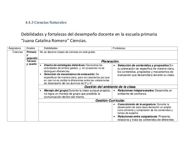 Tabla De Fortalezas Y Debilidades Del Desempeno Docente