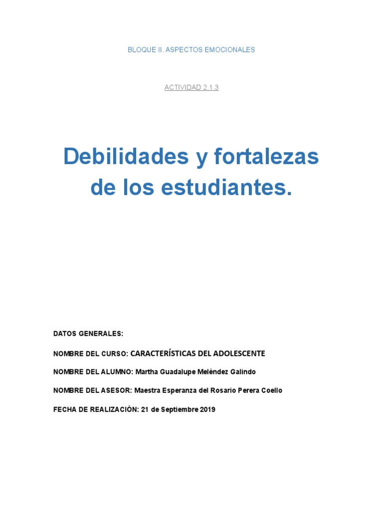2 1 3 Debilidades Y Fortalezas De Los Estudiantes