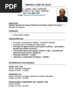 Modelo De Curriculum 1 Preenchido