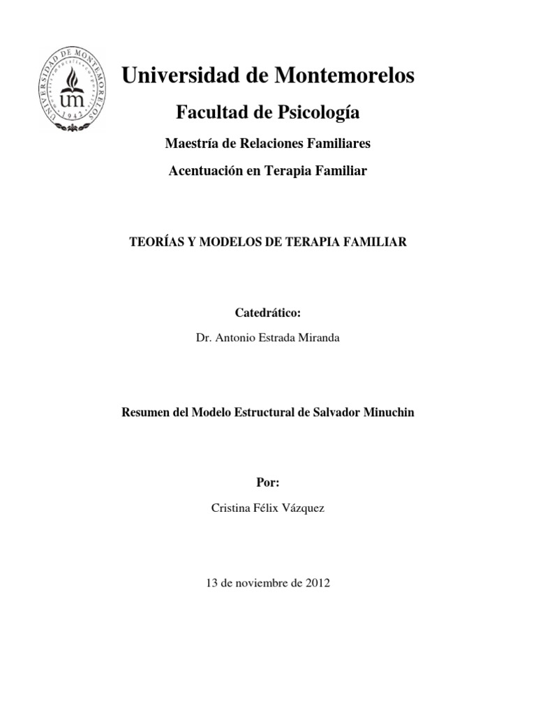 Modelo Estructura De Salvador Minuchin Teoria De Modelos