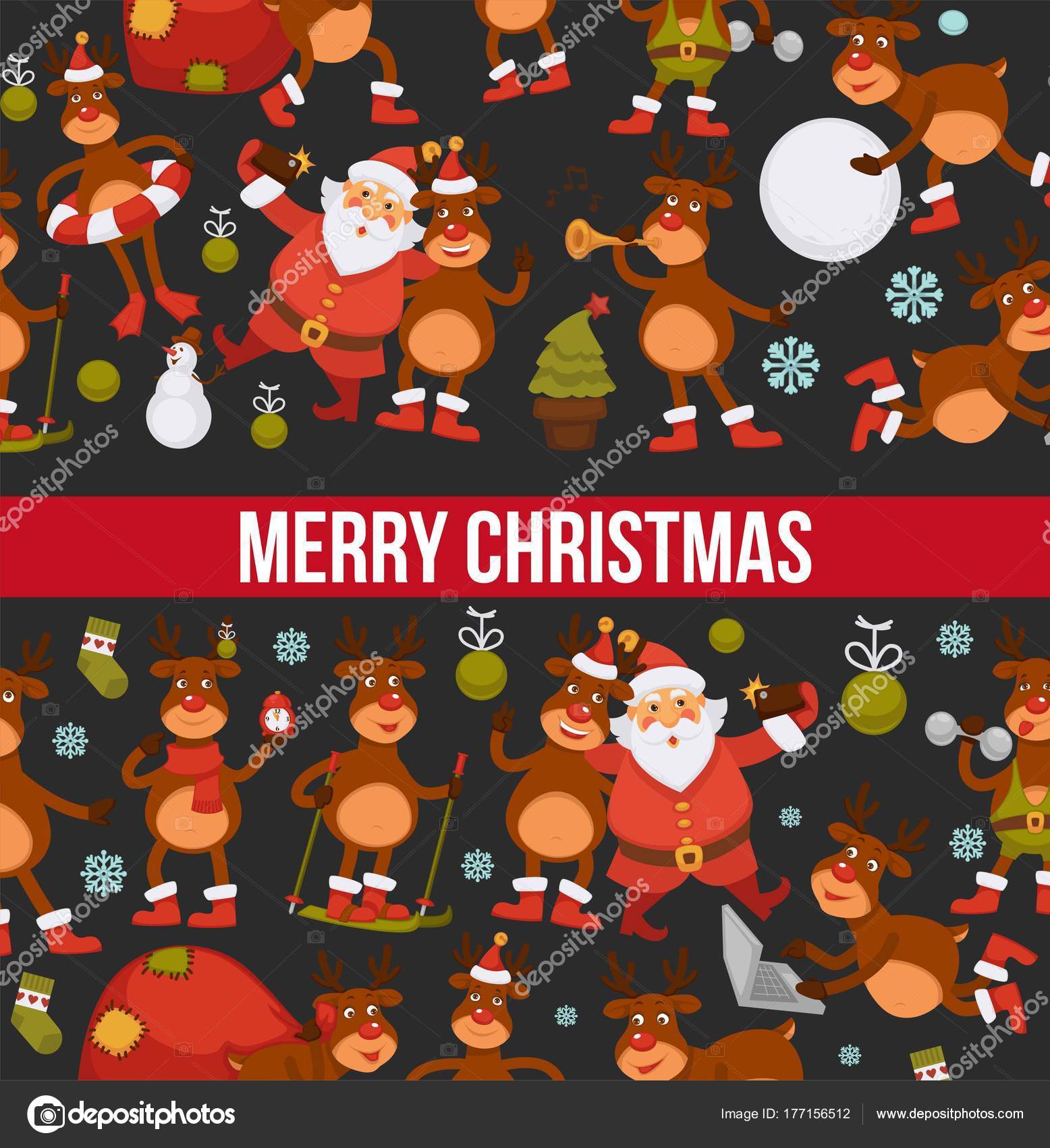 Vetores De Feliz Natal Cartao Com Papai Noel Cervos E